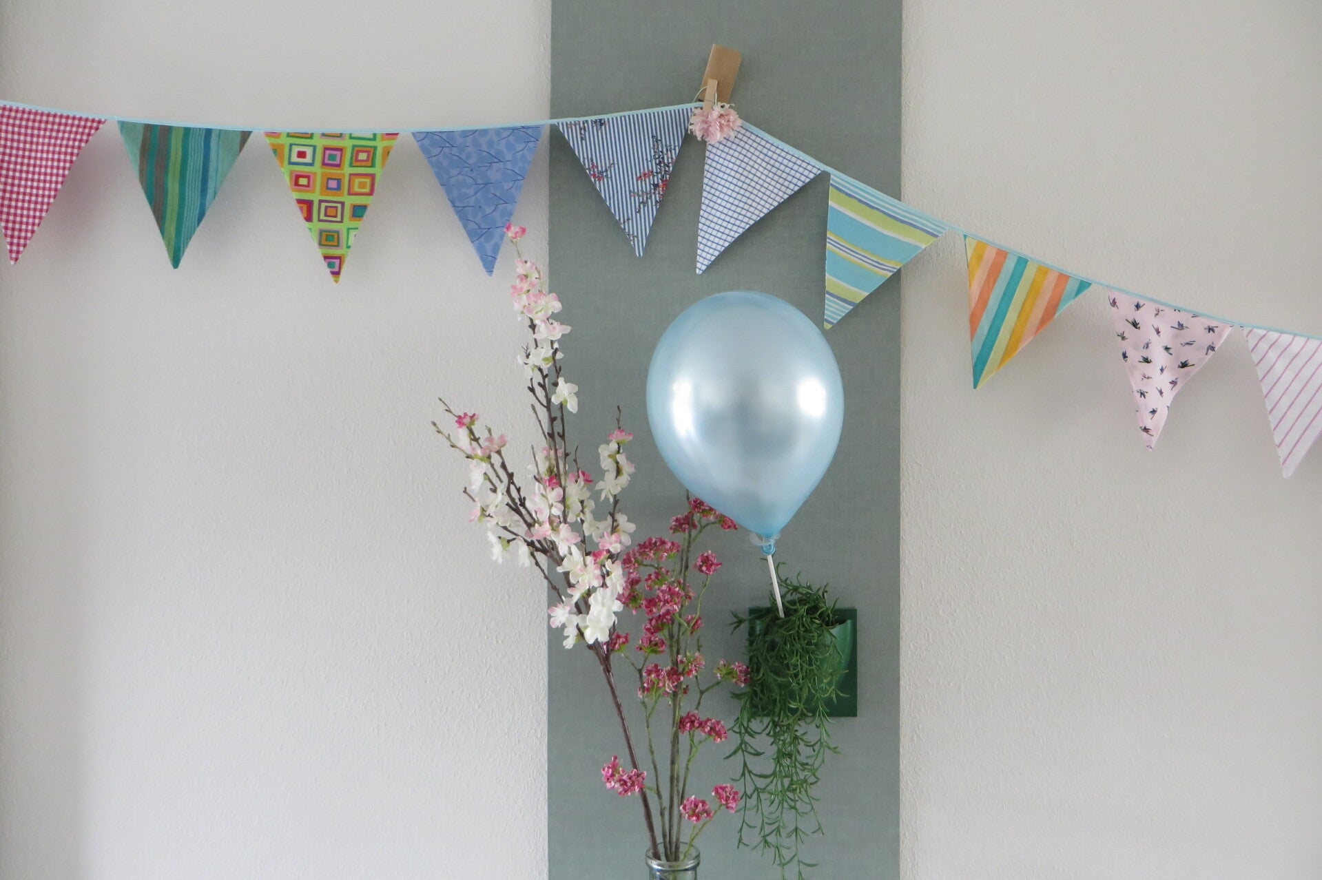 De slinger is ongeveer 7,5 meter lang, met 25 vlaggetjes (van ± 20cm breed) in allerlei printjes.